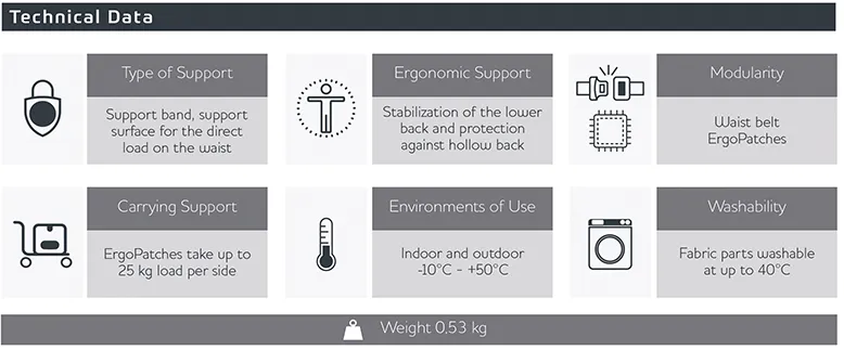 By preventing a hollow back, it transfers the load effectively to the pelvis while the snug fit helps stabilize the torso. At the same time, the belt system provides flexibility and support.
